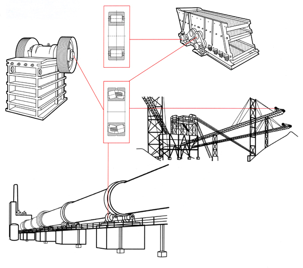 礦山機(jī)械惡劣的工作環(huán)境,要求軸承在高負(fù)載、多粉塵的條件下連續(xù)工作。尤其是振動(dòng)篩和破碎機(jī),其振動(dòng)對(duì)軸承極具破壞性。針對(duì)礦山機(jī)械行業(yè)的特殊應(yīng)用工況,研發(fā)了礦機(jī)專(zhuān)用軸承,幫助礦山機(jī)械設(shè)備提高連續(xù)運(yùn)行的可靠性,減少用戶(hù)維護(hù)和修理的成本。