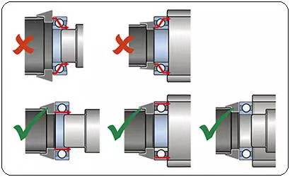 安裝壓力應(yīng)直接施加于過盈配合的軸承套圈端面上,否則會在軸承工作表面上造成壓傷,導(dǎo)致軸承很快地?fù)p壞。